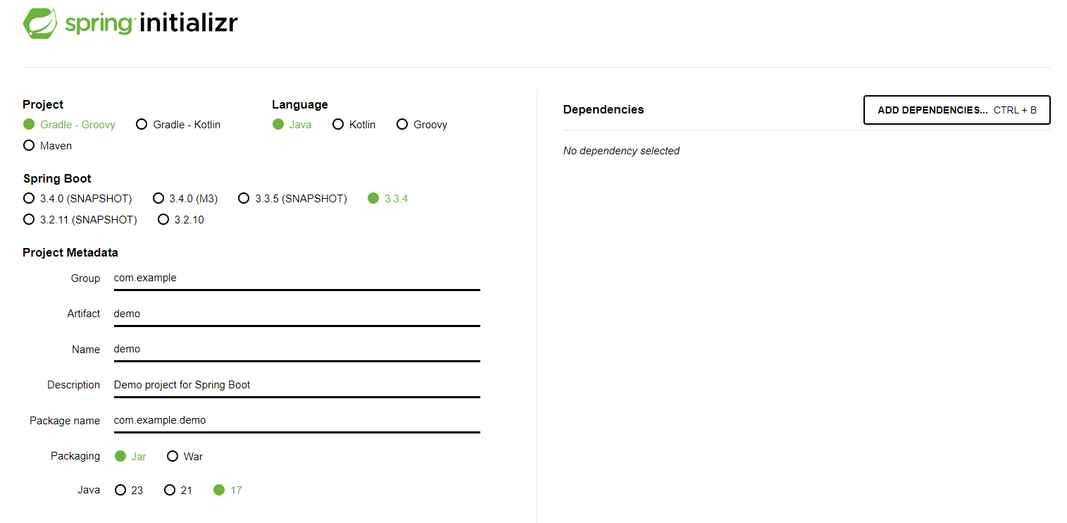 Spring Boot는 https://start.spring.io/ 링크에서 프로젝트 기본 정보 입력 및 설정 후 > 필요한 의존성 부여 > 압축을 풀어 인텔리제이에서 해당 파일을 열어서 사용한다.